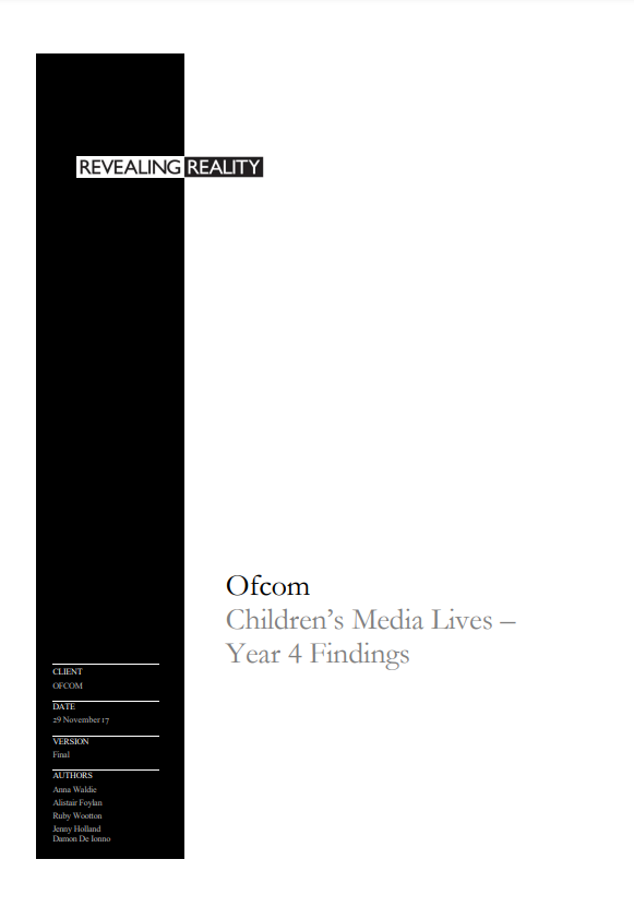Fourth wave of our research for Ofcom tracking children’s experiences of media.